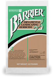 Barrier Herbicide is activated with rainfall or irrigation at temperatures above 60°F. When the active ingredient is washed off the granule, Barrier attaches to soil organic matter and the granules release the active ingredient, creating a "vapor barrier" in the upper two inches of the soil that slowly kills existing shallow-rooted weeds and grasses.